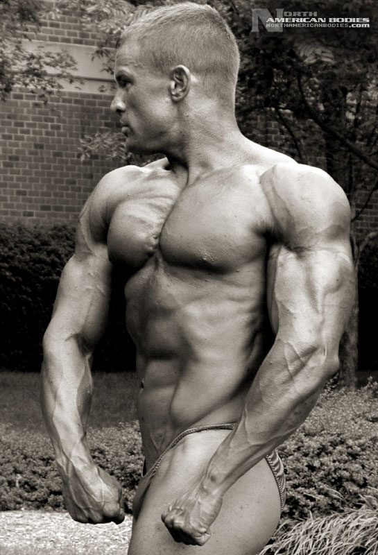 Aaron is a 29 year old Delaware bodybuilder with a great physique and a great smile to go with it. He competed at the Bodyrock Bodybuilding Championships in the middleweight class, weighing in at 173 lbs. at a height of 5’7″. In 2003, Aaron placed third i