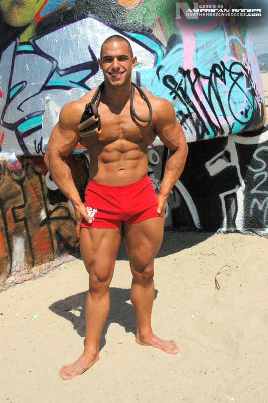 Andre is a teen bodybuilder from California who has made amazing progress in his development and garnered numerous bodybuilding titles already. We met and photographed Andre at the 2008 California State Bodybuilding Championships (2nd place Teen Class) and again the same weekend at the Muscle Beach Classic in Venice Beach (1st place Teen Class). In 2007, Andre placed 3rd in the Jr. Cal Teen Class. Only 19, Andre weighs a muscular 203 lbs at a height of 5’7″. He has a well-proportioned physique with a 28 ” waist. Several weeks later, Andre entered the NPC Jr. California Championships, where he took 1st place in the Teen and Collegiate Classes as well as the Overall. Expect to see alot more of Andre in the future and we look forward to seeing him progress in the sport. For now, we are very pleased to be able to add Andre Bueno to the roster of upcoming bodybuilders and fitness models at NorthAmericanBodies.com!