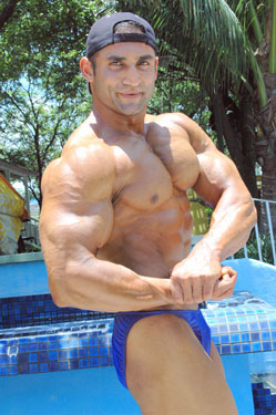 Ashfaq Butt is a professional bodybuilder from Pakistan. A mammoth 6’2″, 226 lbs., Ashfaw traveled to the 2008 Musclemania Universe Championships held in Miami where he won the Heavyweight Class. Ashfaq beat out an incredible line-up of 200+ pounders to earn his Musclemania pro card. This was Ashfaq’s second foray on the Musclemania World Tour having placed in the 2007 Musclemania Worlds show in Hollywood at which time he was determined to return home to train, increase his muscle mass and bring back to Musclemania a new physique. And he did just that, improving his calves and hamstrings as well as his overall symmetry in order to win his class. Ashfaq is 28 years old, and is from Lahore which is the most populated city and capital of Punjab Province in Pakistan. He was won Mr. Pakistan in 2004 and 2005, and in fact has won all the top titles in Pakistan and well as achieving the most titles of any Pakistani bodybuilder. We are very pleased to add Ashfaq Butt to the roster of top bodybuilders and fitness models at NorthAmericanBodies.com!