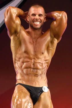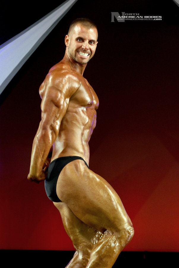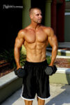 Chris Graf is an upcoming 27 year old bodybuilder. He stand 5’9″ tall, and has a contest weight of 187 lbs (off-season 220 lbs.). His off-season measurements are waist 36″ (at contest 30″), chest 42″, biceps 16 1/2″, thighs 24″ and calves are 17″. His first contest was the 2011 NPC Dexter Jackson Classic held in Jacksonville, Florida where we met and photographed Chris. He plans to compete again soon. Chris played 10 years of baseball, 6 years of soccer, and a year of football. His weight training started out when Chris was 18 years old at Muscle Plus in Tavares, Florida but he currently trains at Infinity Fitness in Fruitland Park, Florida. Chris has begun to pursue his bodybuilding dream. He joined Ironclad Physiques by trainer/bodybuilder Jamie Ibone, who is also his nutritionist and contest prep trainer. We met and photographed Chris at the Dexter Jackson show, and we are very pleased to be able to add Chris Graf to our roster of upcoming bodybuilders and fitness models at NorthAmericanBodies.com!