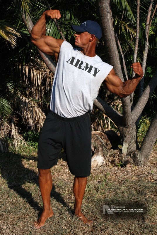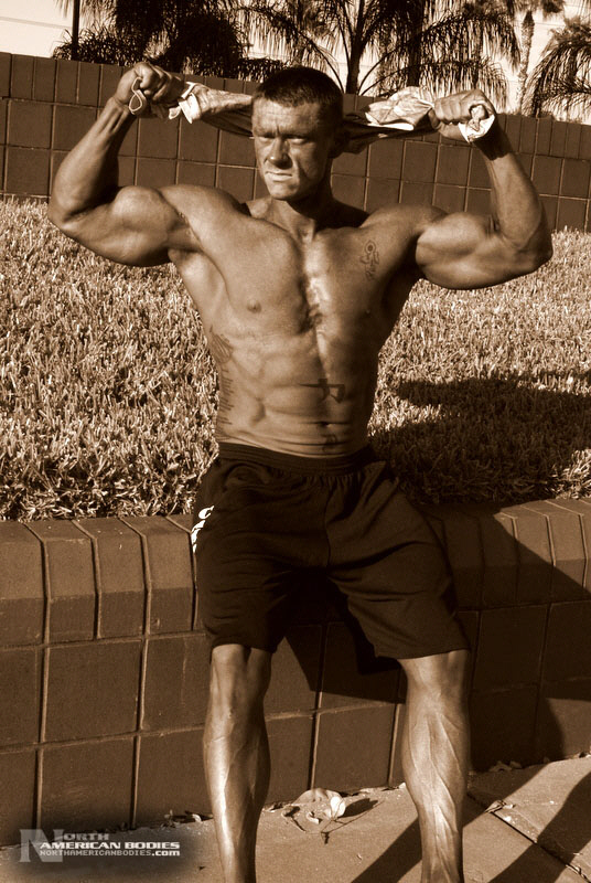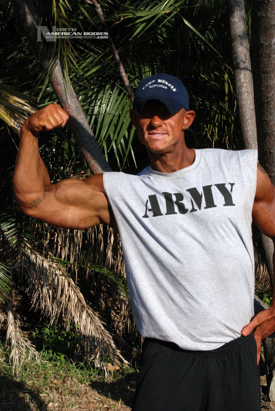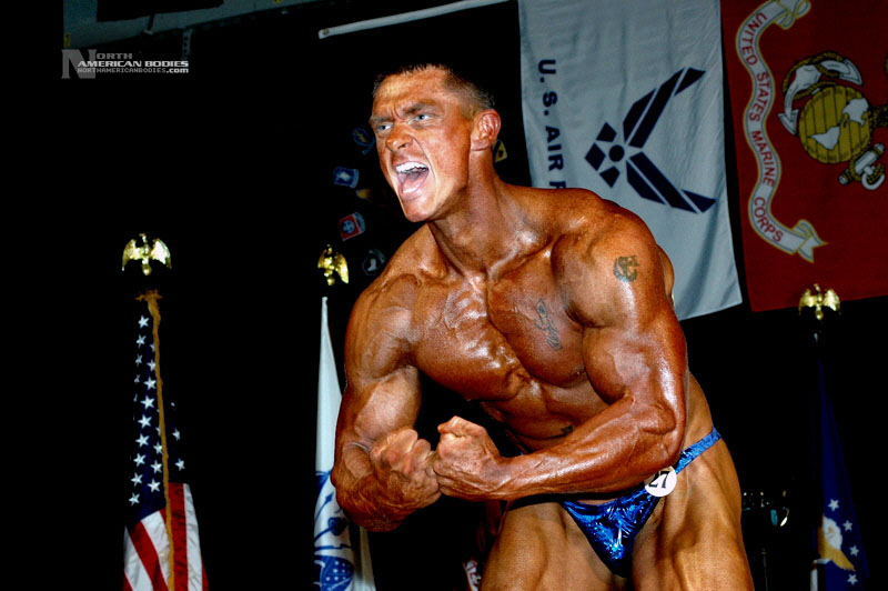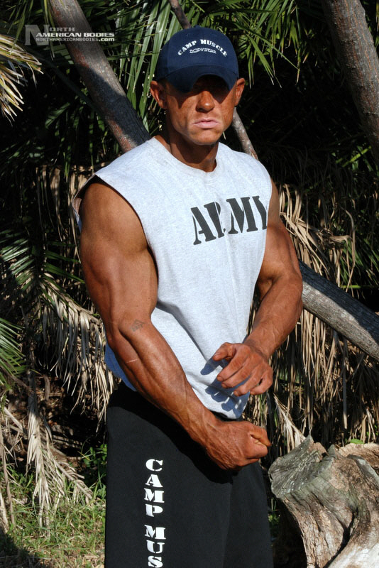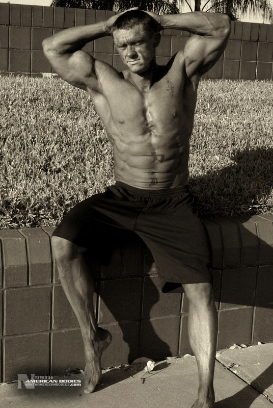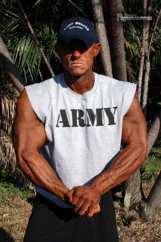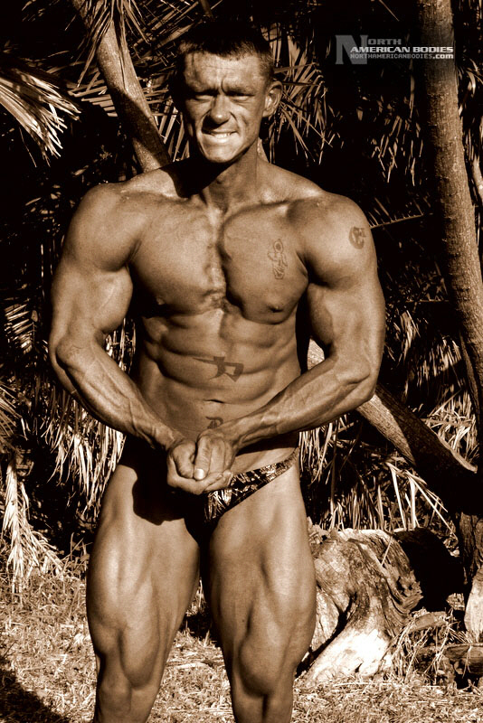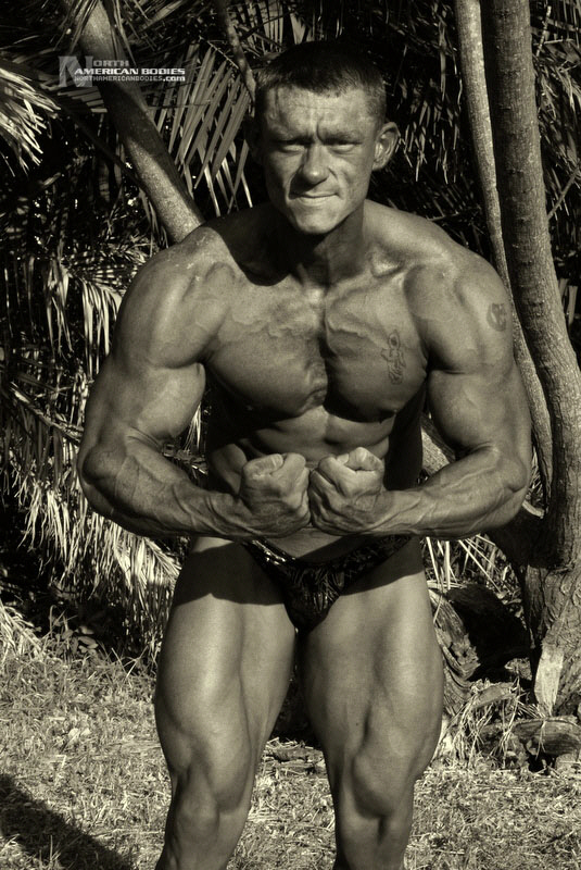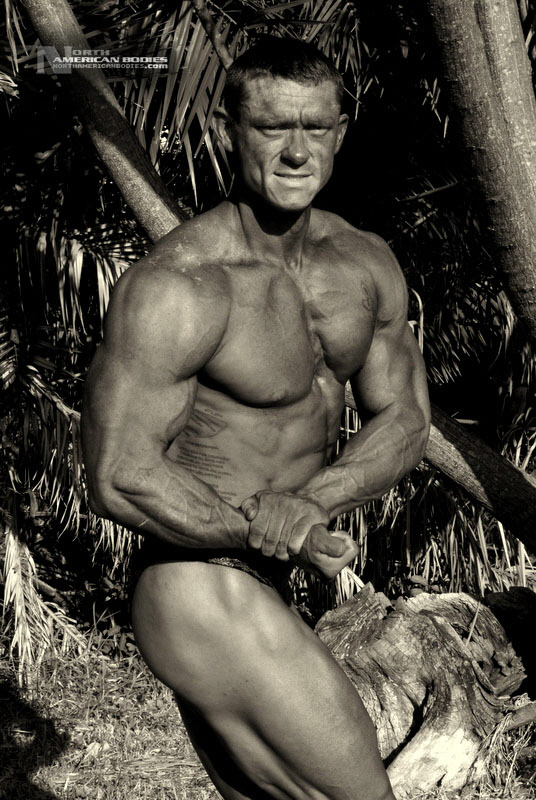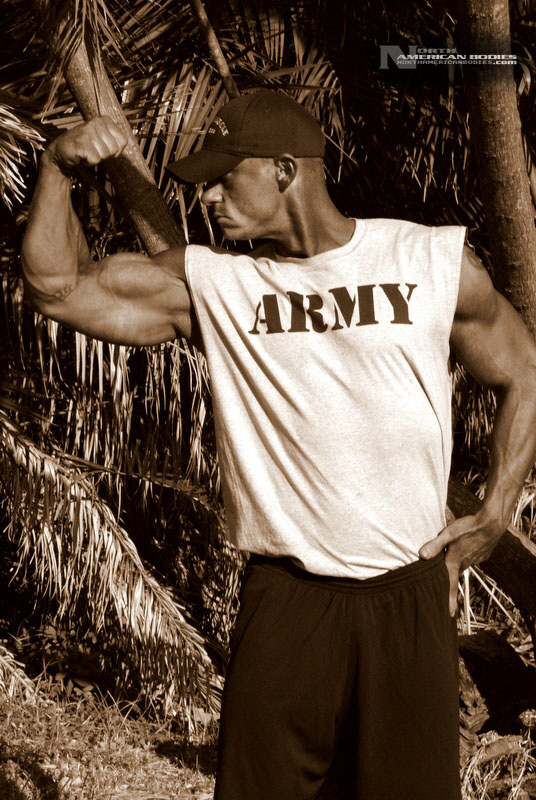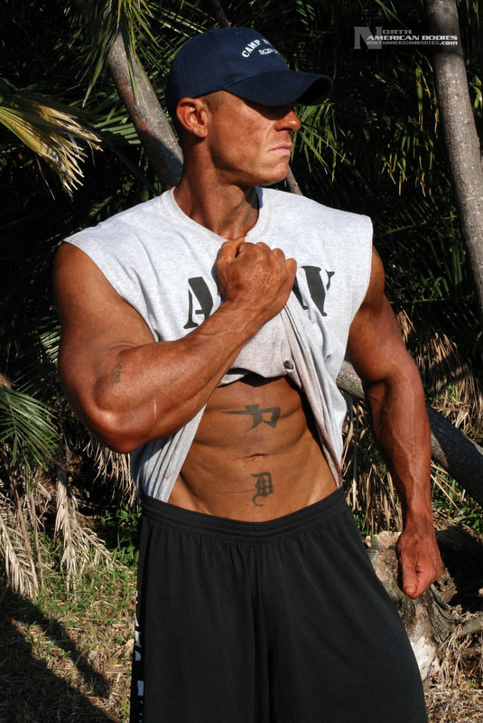 Daniel Eslinger is a 29 year old super heavyweight competitive bodybuilder from Clearwater, Florida. Dan got started in bodybuilding my pure mistake. After serving 8 years in the US Army, he completely tore his left shoulder, broke his neck, and partially fractured his left hip in a roadside bomb in Iraq. Subsequently, he started weight training to get movement and muscle memory back into his body and things just took off from there. He is a U.S. Army Master Fitness Instructor and All-Army Powerlifter. Dan has competed in several bodybuilding contests, including the 2009 NPC Panhandle Showdown (4th Place), 2009 NPC Tampa Bay Classic (3rd Place Open Heavyweight Class), 2009 Mid Florida Muscle Classic (4th Place Open Heavyweight Class) and 2010 NPC Atlantic USA Bodybuilding Championships (2nd Place Open Super Heavyweight Class) and 2010 All Armed Forces Bodybuilding Championships (2nd Place Open Heavyweight Class). Dan achieved a national qualification at the Atlantic USA show, and intends to compete in 2011 on a National stage. At 6’3″ in height, Dan weighs around 240 lbs. when competed and bulks to 285 lbs. in the off season. He has a 52″ chest, 20.5″ biceps, 32″ wasit, 30″ quads, 17″ calves and a 20″ neck. Dan played football in high school as a defensive end. We met and photographed Dan at the Armed Forces contest. We are pleased to add Dan Eslinger to our roster of top bodybuilders and fitness models at NorthAmericanBodies.com!