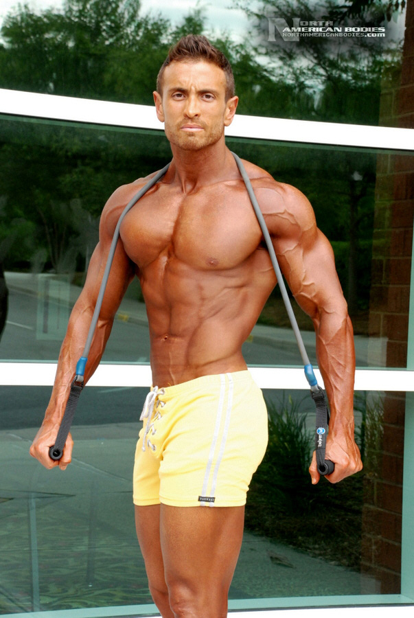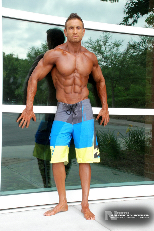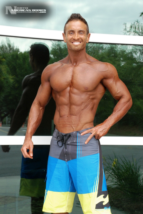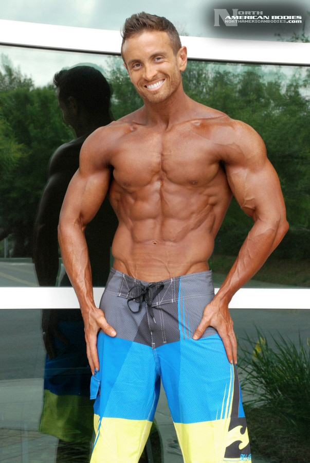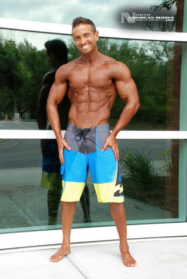David Herskovitz is a 30 year old personal trainer (ACE Certified) and fitness model from Florida. He stands 5’ 6 1/2” tall and weights 160 lbs. when competing and 185 lbs. in the off- David has 15” biceps and calves, a 29” waist, 24” quads and 44” chest. His sports background includes high school football, high school basketball, high school hockey, and collegiate level club hockey. He competed in bodybuilding for two years, was the lightweight champion at the Dexter Jackson Classic in 2009, and placed in the top 5 in all shows in which he competed from in 2009 and 2010. David then ventured into the new NPC Men’s Physique Division, taking 1st Place & Overall at the 2011 Tim Gardner Extravaganza, 5th Place at the 2011 Team Universe Championships, 2nd Place at the 2012 NPC Jr. USA Championships. And then David accomplished his greatest task, earning his IFBB Pro Card in Men’s Physique at the 2012 NPC Team Universe Championships . He has been training for 15 years (sports specific training for first 12 years & more recently bodybuilding and physique training). We met and photographed David at the Jr. USA’s and we are very pleased to add David Herskovitz to our roster of top fitness models and bodybuilders at NorthAmericanBodies.com!