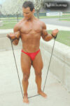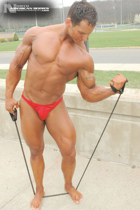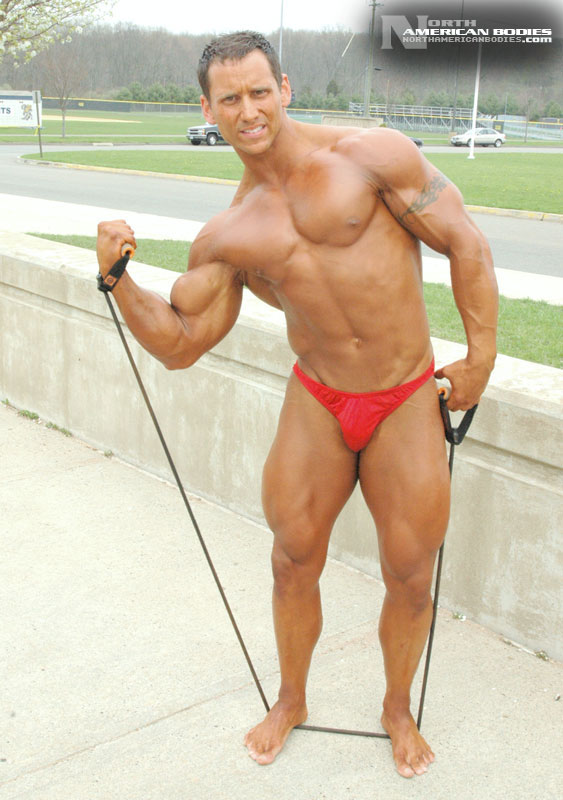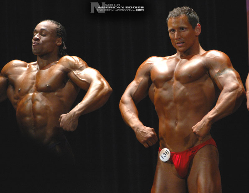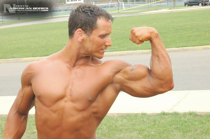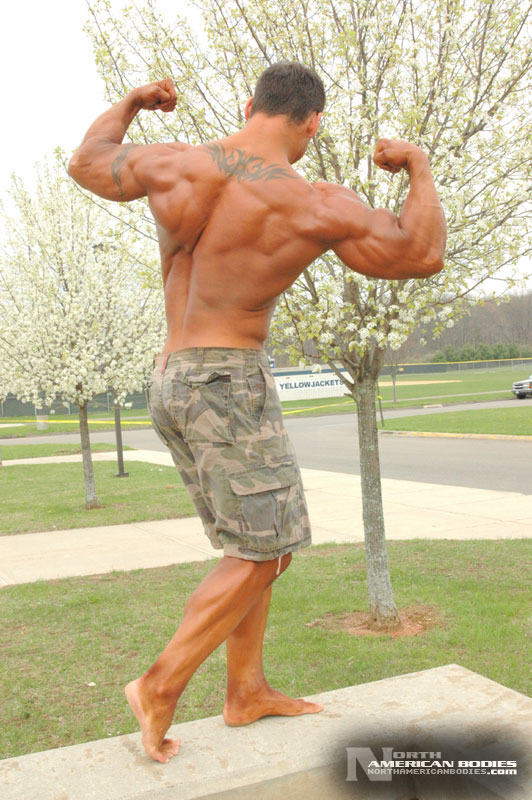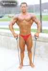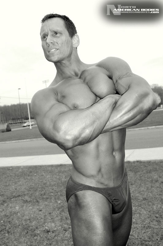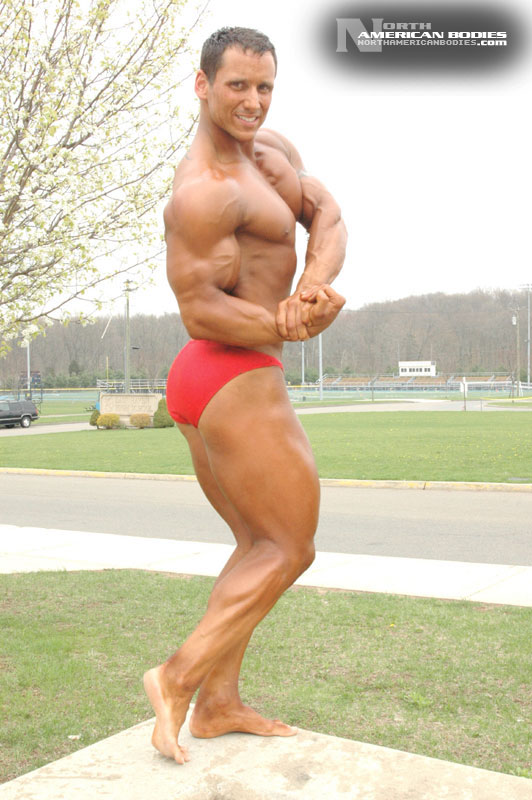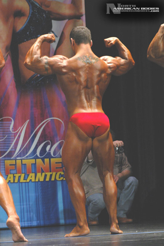 This 29 year old competitive natural bodybuilder and certified personal trainer is from Connecticut. We met him several times competing at the Musclemania Fitness Atlantic Bodybuilding and Fitness Championships held in Connecticut, which is where we photographed Dwight. He placed 3rd in the Heavyweight Class in 2007, improving his prior 5th place showing in 2004. Dwight is a very muscular 204 lbs. in competition, and goes to 240 in the off-season. He stands 5’11” tall and has a 30″ waist with beefy 20.5″ biceps. Dwight has competed in many shows and expects to continue to do more of them. He played college football for two years until an injury stopped him from playing. He is very interested in seeking sponsors and also exploring all fitness modeling opportunities. We are very pleased to add Dwight to the roster of top bodybuilding and fitness models at NorthAmericanBodies.com!