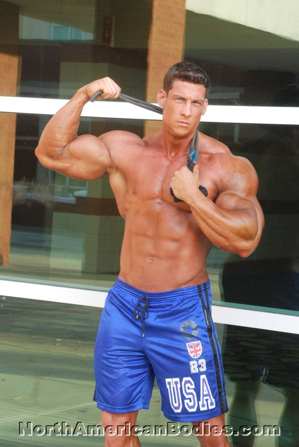 Eric Bethune is a massive bodybuilder, originally from North Carolina, who now lives in Virginia. Now 35 years old, he has competed in the Super Heavyweight Class of several bodybuilding competitions, including most recently the 2013 NPC Jr USA’s in Charleston, South Carolina, where he won his class. Hi first contest was the 2005 Northern Colorado Championships where he placed 1st in the Novice Heavyweight Class and 2nd in the Open Heavyweight Class. Eric has also competed in 2012 Maryland State Championships (1st Super Heavyweight) and East Coast Classic (2nd Super Heavyweight). His contest weight is 242 pounds and he grows to 280 pounds in the off-season. At 6’1” in height, 22” guns, 18” calves, 52” chest and 30” waist, Eric has massive proportions and is surely to make an impression in the bodybuilding community. Looking forward to his next show. We did a photo shoot with Eric after weigh-ins at the 2013 NPC Jr USA’s, and we are very pleased to add Eric Bethune to our roster of upcoming bodybuilding and fitness models at NorthAmericanBodies.com!