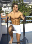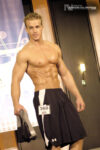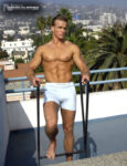 James Ellis is a 27-year-old aspiring model and actor from Los Angeles, California. He grew up in South Bend and graduated from Indiana State University receiving a degree for Education and a minor in Physical Education. He worked through the National Academy of Sports & Medicine (NASM) to become a personal trainer. Right after graduation, James packed his bags and moved out to San Diego and then to Los Angeles in pursuit of his lifelong dream to be an actor/model. He’s already appeared in commercials, workout videos, promos, print work, as well as the front cover of Exercise for Men Only magazine. He was a former skinny High School nerd who has transformed his body to become an Indiana State Fitness Model champion. He has appeared in Nike and Ford commercials. James, with blonde hair and hazel eyes, stands 5’10” tall and has a lean, muscular body with a 32″ waist. James has a muscular physique and has had some past experience competing in bodybuilding competitions, but he has redirected his current focus to modeling and acting. We photographed James Ellis the day after he competed in the 2007 Model America show in Los Angeles at the home of a mutual friend Howard who helped arrange the shoot with James and fellow model Max Wettstein. We are very pleased to add James Ellis to the roster of top fitness and bodybuilding models at NorthAmericanBodies.com!