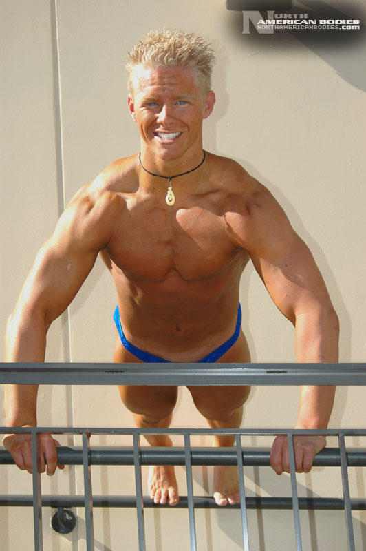 We met Michael competing at the 2005 Musclemania Worlds bodybuilding competition held in Hollywood, California. With his blonde hair, amazing blue eyes and inviting smile, handsome Michael is the quintessential California guy. He won his competition again