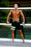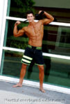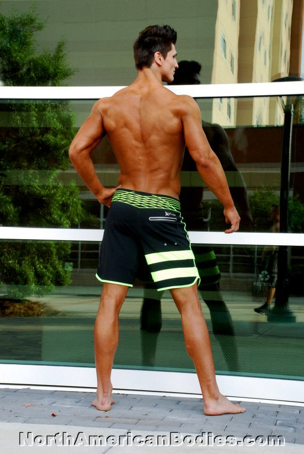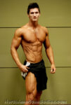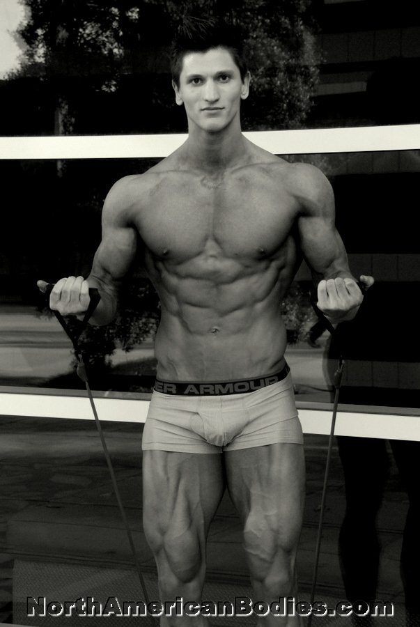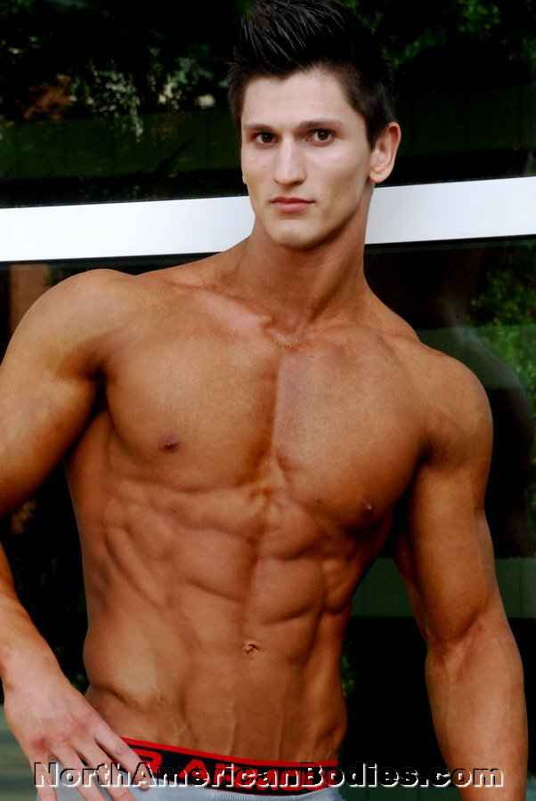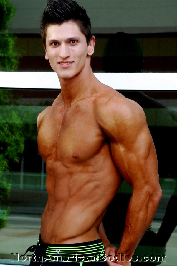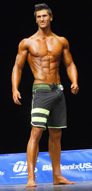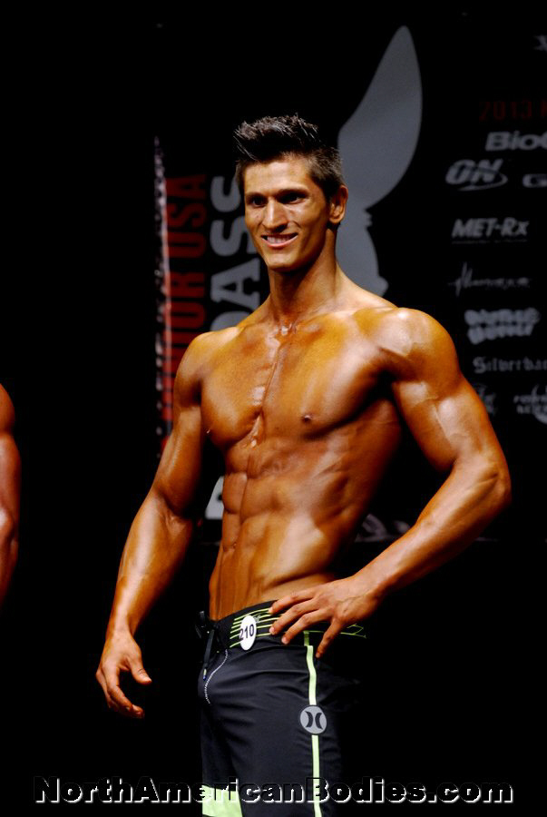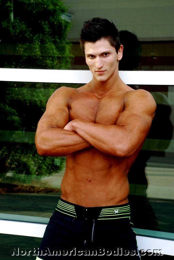 Nate Baumbick is a fitness model from Ohio. He has been an athlete his whole life, playing semi-pro hockey all over the United States and Canada as well as in Russia. He has been training since the age of 16 for hockey, but fitness has always been very important to Nate, turning into a passion. He is 6’3” tall and weighs about 220 pounds when shredded for shoots and competitions, and 240 pounds off-season. His biceps measure 17.5”, quads 27”, waist 36”, chest 46”, and calves 17”. In 2012, Nate entered the NPC Natural Northern USA Championships in the Men’s Physique Division, placing 4th in Class C. He also competed at the 2012 NPC Natural Pennsylvania Championships (1st Place in Class B) and the 2012 Mid Atlantic Grand Prix (1st Place). Nate moved on to the National level, competing in 2013 at the NPC Jr. USA Championships in Charleston, where he took 1st Place in Class F and also earned his IFBB Pro Card. We met and photographed Nate at the Jr. USA, and we are pleased to add Nate Baumbick to our roster of top fitness models and bodybuilders at NorthAmericanBodies.com!