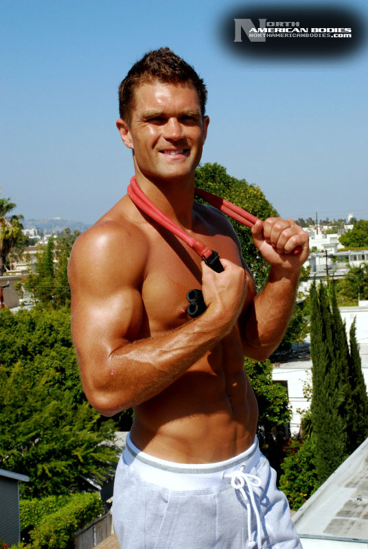 Todd is a model and actor from a small town in the north of Florida. Because his dad owned a gym, he could bench press before he could shoot a basketball. In high school Todd was selected as an All-American Linebacker, and then attended the University of Florida on a football scholarship where he was a starting outside linebacker. While at Florida he was named to the Butkus Watch List which is given to the nation’s top collegiate linebacker. In addition, Todd was active in baseball, basketball, golf, wrestling and track & field. Todd graduated with a business degree and worked as a financial advisor. He is now living in Santa Monica, California and working as a personal trainer. Todd has always enjoyed training and now gets to give back by helping others reach their fitness goals. In addition to modeling, Todd is pursuing a career in acting (including television roles in Nip/Tuck, The James Bates Show and Going Pro With Jerry Rice, and a movie role in Date Night). The shoot with NorthAmericanBodies.com was arranged with the help of our friend Howard who offered his penthouse for the location, and this was Todd’s first fitness shoot. His chiseled features and 6-pack abs are clearly evident in our photos. He is tall at 6’4″ and weights 210 lbs. We are very pleased to add Todd McCullough to our roster of upcoming fitness models and bodybuilders at NorthAmericanBodies.com!