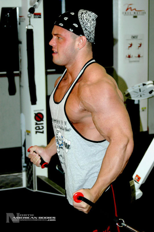 At 19, this young competitive bodybuilder has an amazing physique. He is massively muscled and is focused on going far in the sport. He competed at the 2005 NPC Teen Nationals in Pittsburgh, where we first met Adam, and the 2005 Eastern USA’s held in New