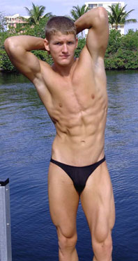 Alan is a 6’1″ teen bodybuilder from Florida who weighs 183 lbs.. He competed at the 2008 FAME Tropical Bodybuilding Championships, his first show. He placed 1st in the Junior class. He hopes to do that by adding 20 lbs. of muscle mass. Alan currently has a 42″ chest, 16″ biceps and calves, 32″ waist and 23″ thighs. He got started training during his freshman year in High School, he took a weight training class and from then on continued to improve his physique., His goal is to become a FAME Pro by age 20! Referred to us by his trainer, NAB model Armond Scipione, we photographed Alan a few days before his contest. We are very pleased to add Alan to the lineup of upcoming bodybuilders and fitness models at NorthAmericanBodies.com!