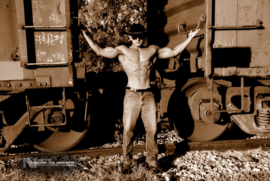 Ben Masciale is a 23 year old bodybuilder from Florida. In addition to bodybuilding, Ben is a powerlifter and competes in American Powerlifting Federation meets. He can squat 445, deadlift 500 and bench 385 lbs. We met Ben when he competed at the 2010 NPC Atlantic Coast Classic Bodybuilding Championships in Port Canaveral, Florida. He placed 5th in both the Novice and Open Middleweight Classes. He was fantastic on stage, ripped abs, sunglasses and a cowboy hat. Our photoshoot with Ben was done the morning after the show, and we continued with the cowboy theme. We are very pleased to add Ben Masciale to our roster of upcoming bodybuilders and fitness models at NorthAmericanBodies.com!
