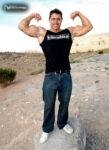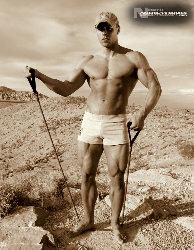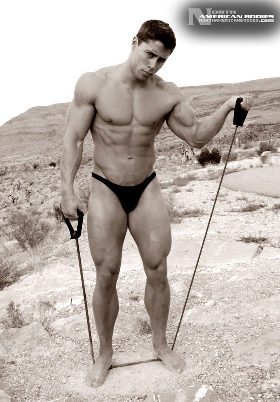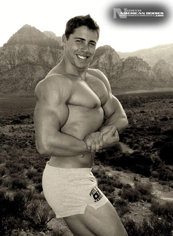 Charley Montreuil is a sensational upcoming young bodybuilder from Quebec, Canada. At just 19 years of age, Charley has developed an amazing physique, with 18″ arms, a 49″ chest, 26″ quads, 18″ calves and a 31″ waist. He weighs 210 lbs. at a height of 5’10”. Charley can bench 350 lbs. and deadlift 480 lbs. He has competed in several bodybuilding competitions already, with 2 wins and 2 second-place rankings. He competed at the 2007 Quebec Provincials (tested) where he placed 1st in the Junior Class at only 16 years of age, the 2007 Quebec Metro where he again placed 1st, the 2008 Quebec Provincials in which he placed 2nd and the 2008 Musclemania Universe where he placed 2nd in the Junior Class. Charley started training because of football and was getting results pretty fast. He was told to try bodybuilding and so he did. Charley is striving to be Mr. Canada! He seems to be well on his way to achieving that goal. In 2009, Charley traveled to Los Angeles and entered the Mr. L.A. contest, and a couple of weeks later we met Charley in Las Vegas where we were able to photograph him just after that show. He looked great and we got some fantastic photos of Charley. We are very pleased to be able to add Charley Montreuil to our roster of upcoming bodybuilders and fitness models at NorthAmericanBodies.com