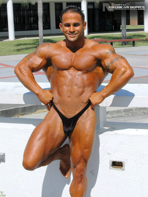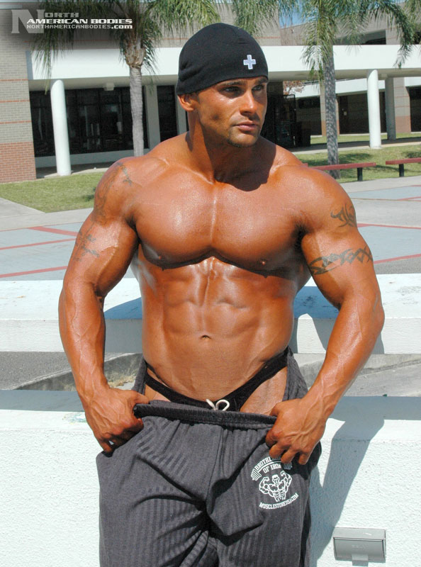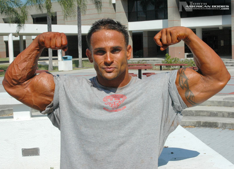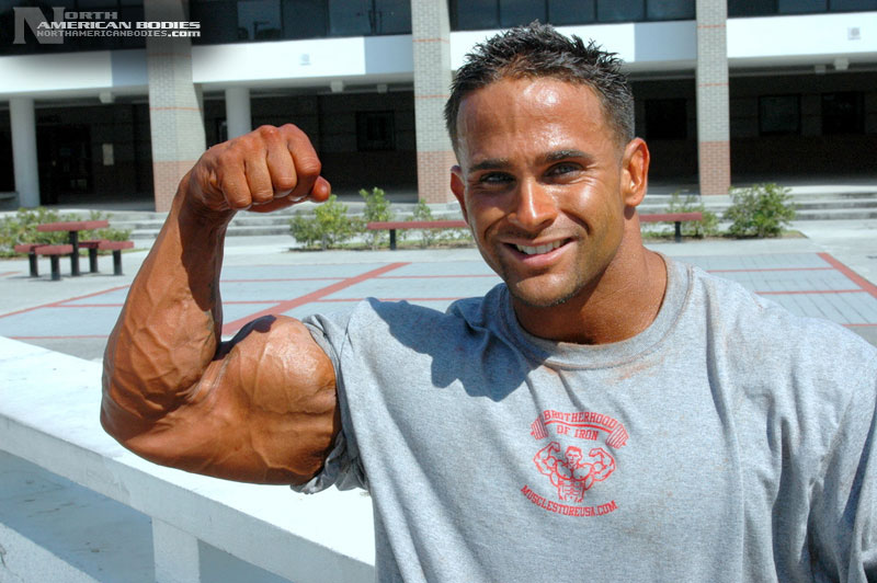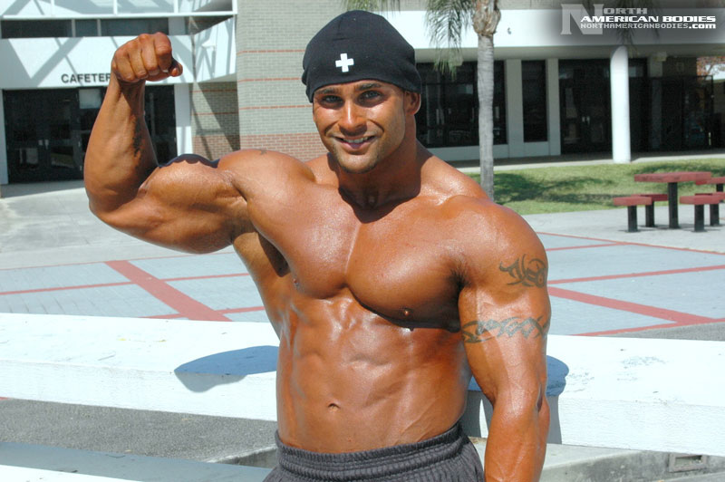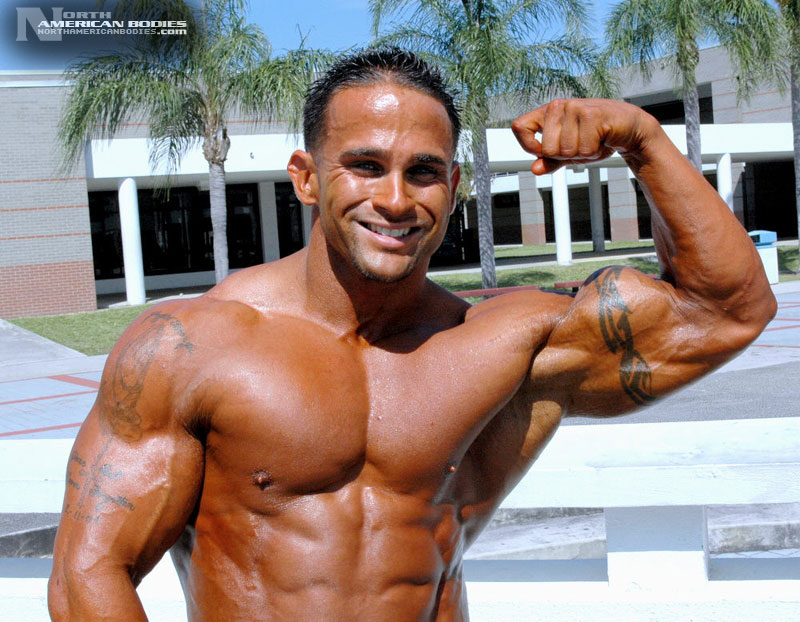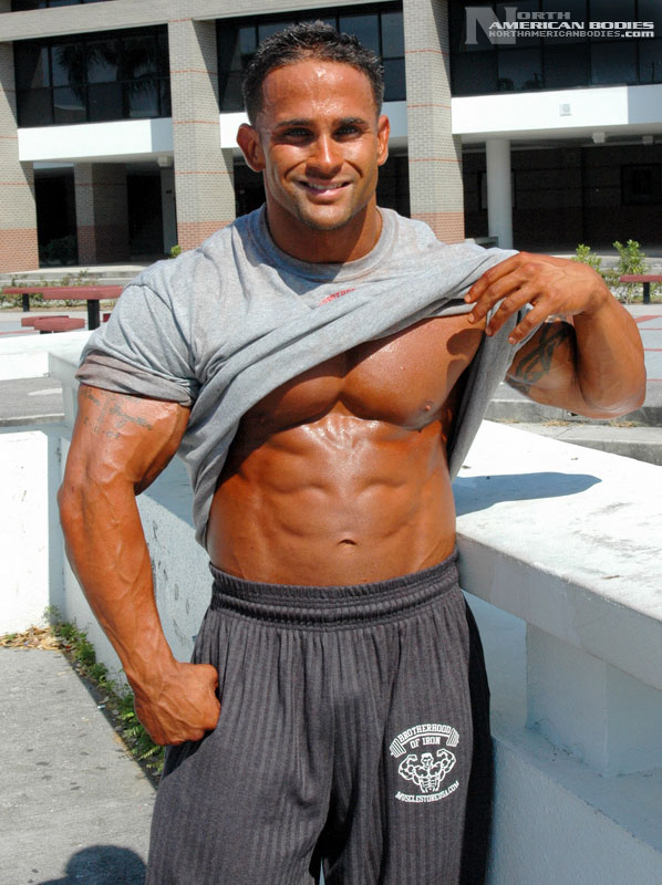 Derrick had some impressive successes as a teen bodybuilder, but this Florida resident, who moved there from New York in 1995, took some time off from competing. Lucky for us, we found Derrick as he was making a comeback to the sport. Now 28, we saw Derrick competing at the 2006 NPC Sunshine Classic Bodybuilding Championships in Florida, where he took 3rd place in a very competitive light heavyweight class. But to us, Derrick was the standout of the show. He placed 4th in the light heavyweight division in 2001 and placed 5th in 1999. He also won the Teen Men’s Overall and 1st light heavyweight titles at the 1998 South Florida District Bodybuilding contest. He is extremely handsome and has an amazing physique. We photographed Derrick both after the prejudging and the next day near his home. Derrick stands 5’6″ tall and packs 198 lbs. of lean hard muscle on that frame, with 19 1/2″ arms and a 32″ waist. In the off-season, he bulks up to between 225 and 235 lbs. Derrick wants to continue competing to establish a presence and is looking for sponsorship. His is also very interested in exploring fitness modeling opportunities. We are very pleased to add Derrick to our roster of top bodybuilding and fitness models at NorthAmericanBodies.com!