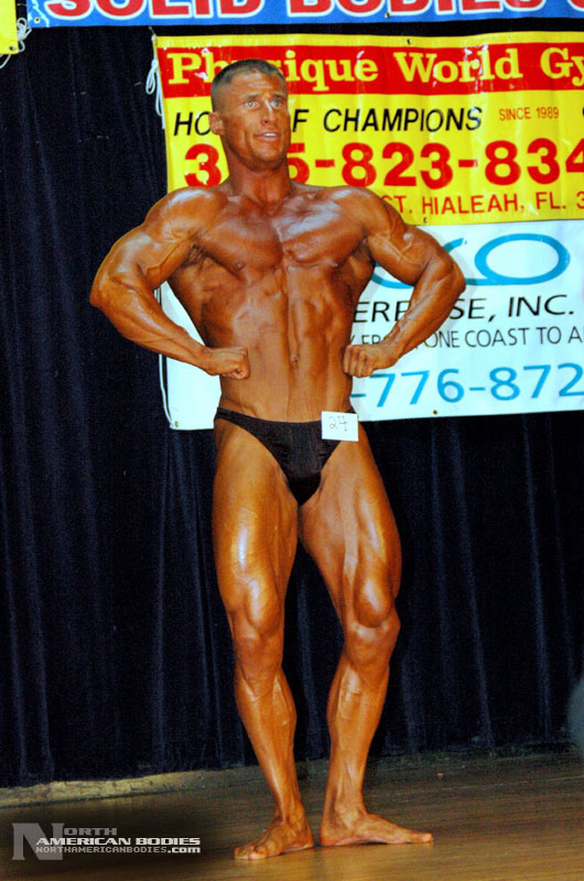 Jim is a Fort Lauderdale bodybuilder and fitness model we met attending a few bodybuilding shows as a spectator. He told us he would be competing, and so we followed his progress to the 2006 South Florida Bodybuilding Championships. He looked fantastic, and won his middleweight class in both the Novice and Open contests. A couple of days later, we photoraphed Jim at a local park and once again, the results were great. Jim has done some modeling, appearing in a few print ads, and he would like to get more involved in fitness modeling. We think Jim has a great future in bodybuilding and modeling, and we are pleased to add Jim to the roster of top bodybuilding and fitness models at NorthAmericanBodies.com!
