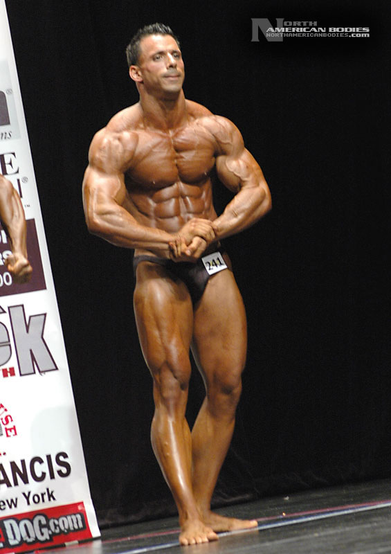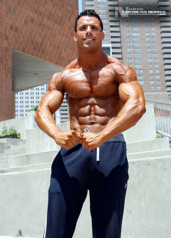 Marc is a competitive bodybuilder from Connecticut. He competed in 2008 at the NPC Atlantic States Bodybuilding Championships, where he placed 4th in the Novice Light Heavyweight Class. With the help of NAB photographer Steve Roberts, we photographed Marc right after this show. A week later, Marc competed in the Gold’s Gym Grand Prix held in New Haven, Connecticut where he placed 3rd in the Light Heavyweight Class. Marc is 28 years old, stands 5’10” tall and weighs 187 lbs. in competition and 215 lbs. off-season. Marc is new to competition, so we look forward to seeing more of him and his progress in the sport. For now, we are pleased to be able to add Marc to the roster of upcoming bodybuilders and fitness models at NorthAmericanBodies.com!