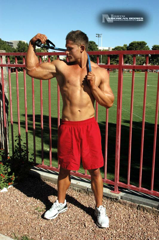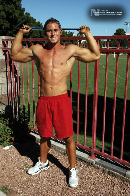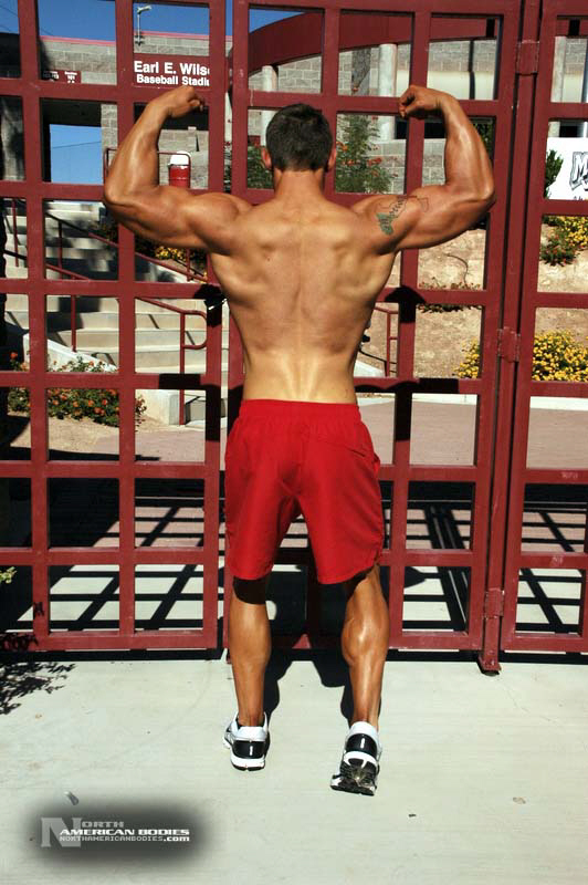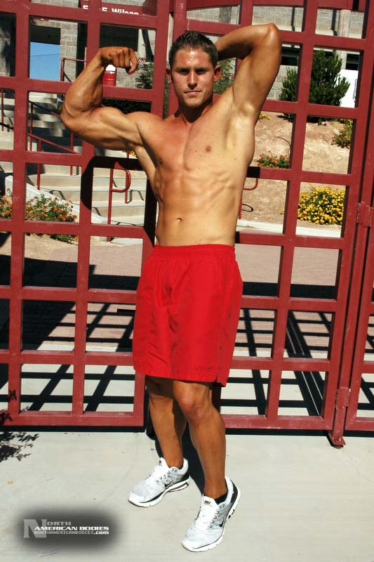 Michael Minervini is a 20 year old bodybuilder and fitness model from Las Vegas. Michael stands 5’11” tall and weighs 212 lbs. He played football since grammar school and began lifitng weights to get stronger and develop mass. After a year of college football, Michael turned his attention to bodybuilding. We met Michael when he competed at the 2010 Muscle & Fitness Magazine Model Search held in conjunction with the Mr. Olympia Expo in Las Vegas. Michael first competed in a natural bodybuilding competition, the 2009 INBA/PNBA Team USA Championships in which he placed 2nd in the Juniors Class. He took home Overall trophies in the Teen Class and first place in a Novice Tall Class at the 2009 INBA/PNBA U.S. Natural Bodybuilding Championships (PRO/AM), and placed 3rd in the Juniors Class at the INBA Natural Olympia. Most recently Michael won the Junior Class and 1st in Open Tall Class at the 2010 ABA/INBA United States Natural Bodybuilding Championships We photographed Michael on the campus of UNLV right after he came off the Olympia Expo stage for his model round. We are pleased to add Michael Minervini to our roster of upcoming bodybuilders and fitness models at NorthAmericanBodies.com!