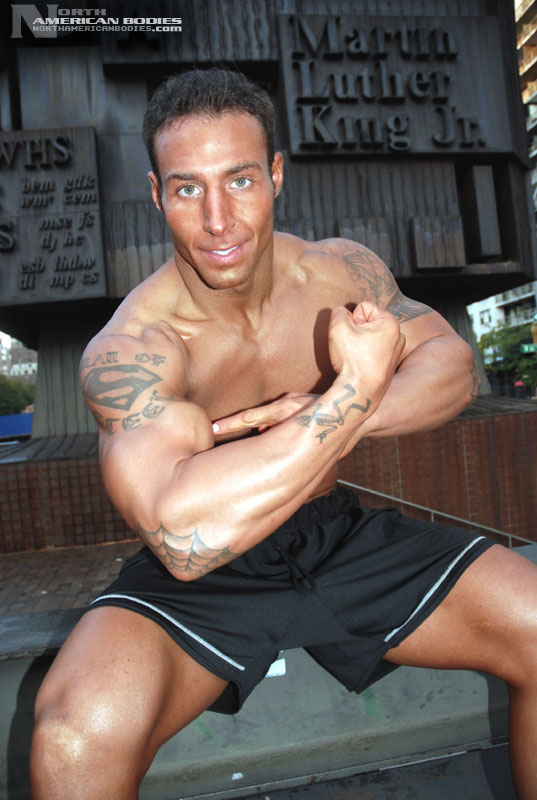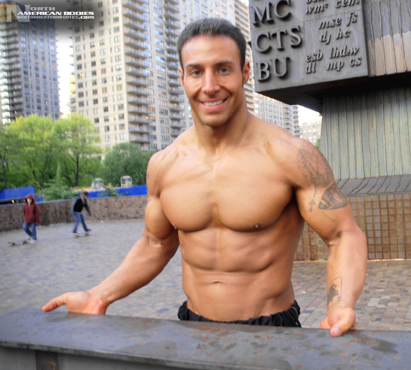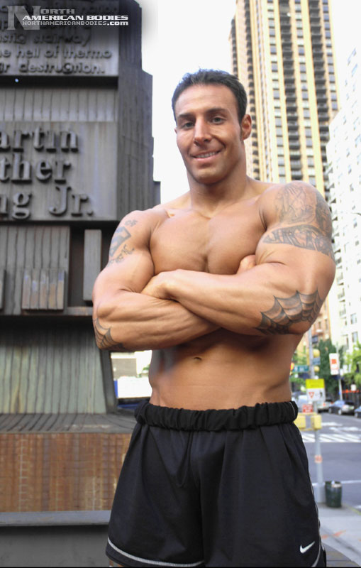 Michael is a New York City bodybuilder and fitness model who competed in the Novice Class at the 2007 INBF Naturalmania Bodybuilding Championships where he placed 2nd in his Heavyweight Class. He also competed at the INBF Amateur Worlds Championships (6th place in Light-Heavyweights), which is when we photographed Michael on a brisk Autumn day in Manhattan. We look forward to seeing this very handsome bodybuilder compete further, but for now we are very pleased to have Michael Victoria join the roster of our upcoming bodybuilding and fitness models at NorthAmericanBodies.com!