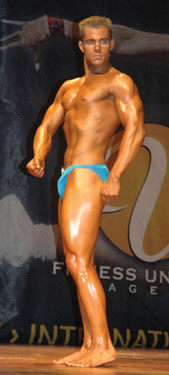 From Ontario, Canada, Mike Kelly is a 21 year old competitive natural bodybuilder who we caught competing in his 2nd show, the Toronto Musclemania. He works in the sports nutrition field, and would like to do personal training. He has a varied sports back