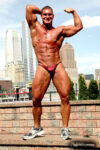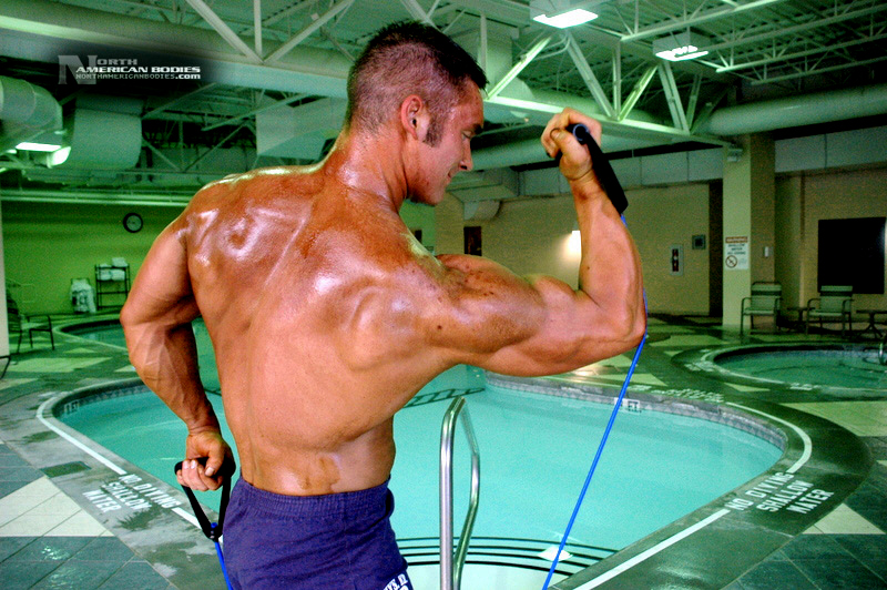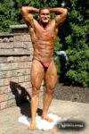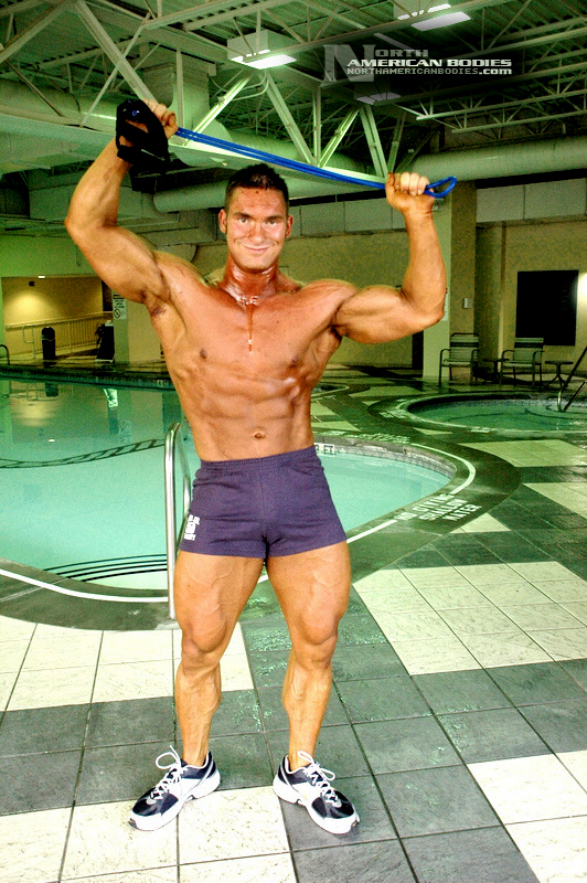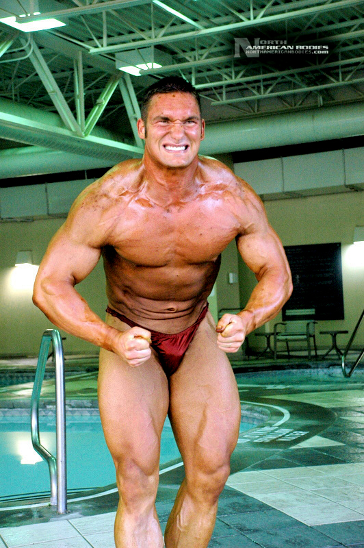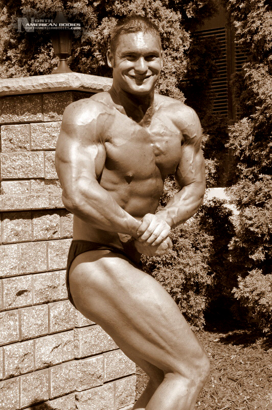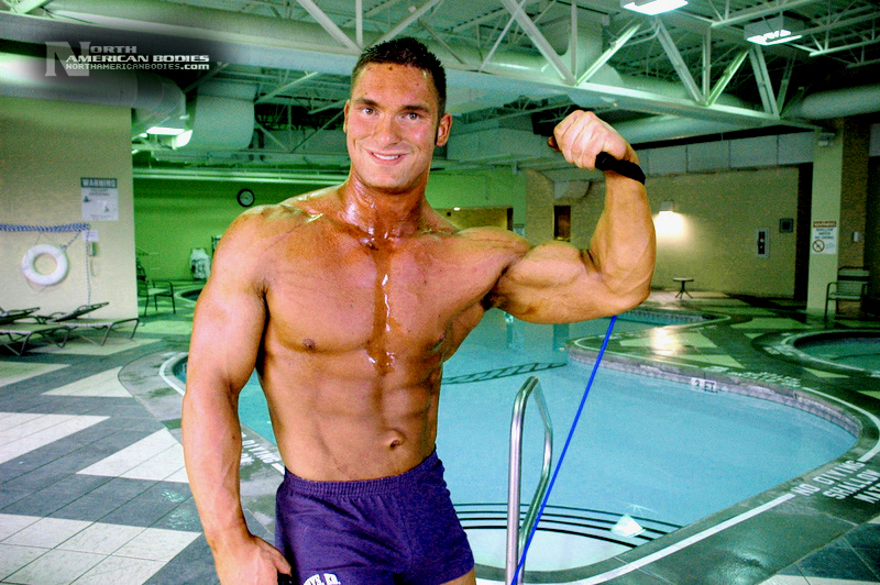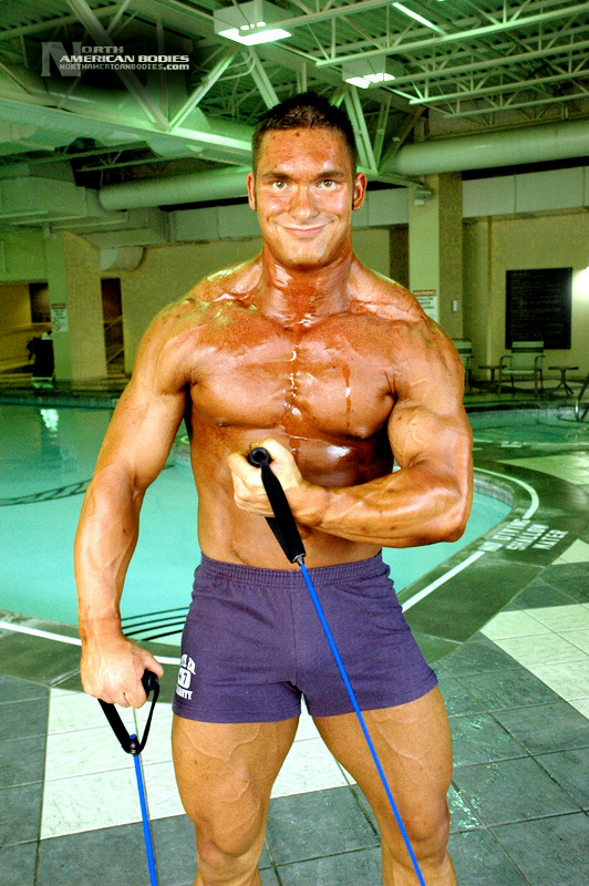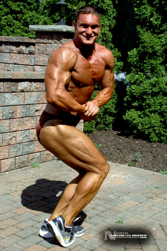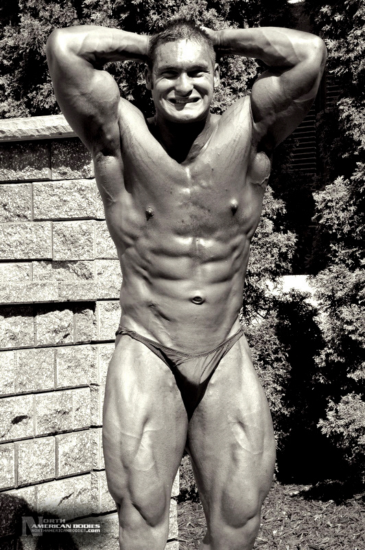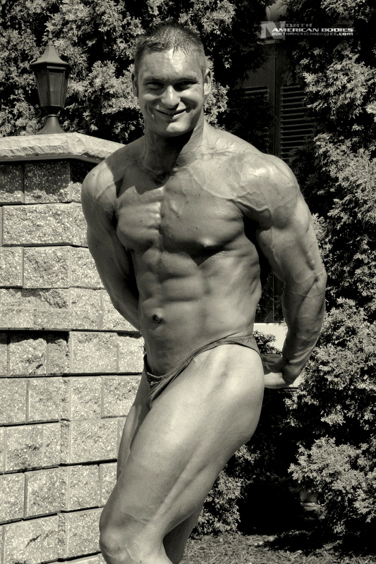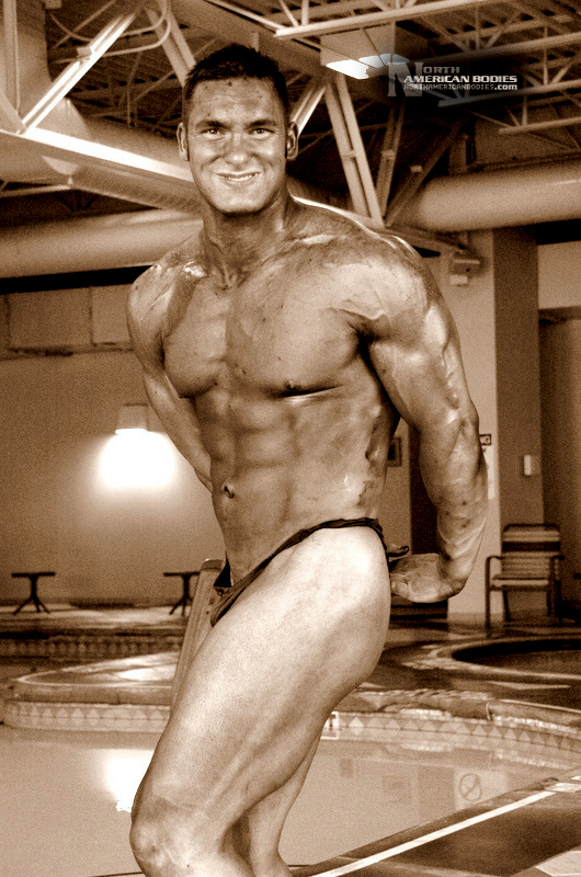 Mike Madger is a 25 year old natural bodybuilder from Ohio. Currently in college, Mike stands 6’1″ tall and competes as a heavyweight. His goal is to become a pro and he has begun the journey, having competed in several bodybuilding competitions already. He has competed at the 2007 Natural Northern USA Bodybuilding & Figure. placing 2nd in the Heavyweight Class and 3rd in the Junior Class, the 2007 Natural Ohio Bodybuilding & Figure Championships, taking 2nd in the Heavyweight Class and 5th in the Juniors Class. After a brief layoff for an injury, Mike began competing again in 2010. At the 2010 NPC Collegiate National Championships, Mike took 8th place in the very competitive Heavyweight Class and at the 2010 NPC Team Universe Bodybuilding & Figure Championships, he took 6th place in the Heavyweight Class. Mike’s weight in contests is 230 lbs, and off-season he bulks to 245 lbs. His pumped biceps measure 19.25″, waist off-season is 36″, chest 51.5″ pumped, quads 30″ pumped and calves 19″ cold. Growing up Mike played soccer ice-hockey, and in the off-season of hockey he took tournament karate classes, and competed and demoed at tournaments. He advanced quite a bit in hockey and stepping onto the ice as a new member of the AHL (American Hockey League) was the goal, but unfortunately a “cheap shot” as it’s termed caused Mike to never again play at the same level. Even after a year of physical therapy he was unable to handle himself on the ice the way he should have. After his hockey days Mike turned from team sports to individual sports. In the summer he prepped for both course, trail, and downhill mountain bike racing, and throughout the winter Mike did free-style, big-air, and half-pipe riding. Two years latter he began to let those two sports fade as he picked up on bodybuilding, and since then Mike has competed exclusively in bodybuilding and enjoyed it very much. We photographed Mike at the Collegiate Nationals in Pittsburgh, and we welcome him to our roster of top bodybuilders and fitness models at NorthAmericanBodies.com!