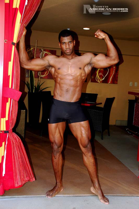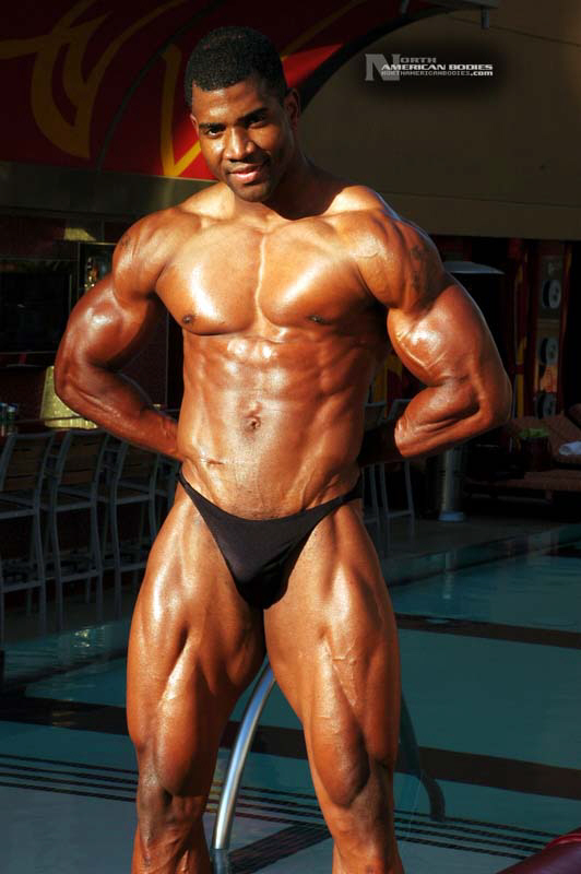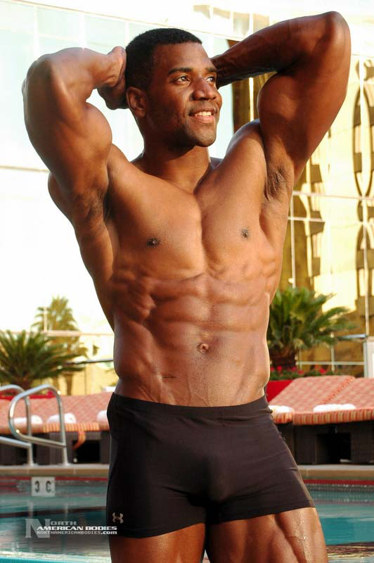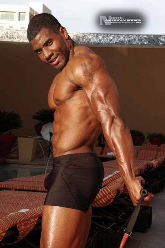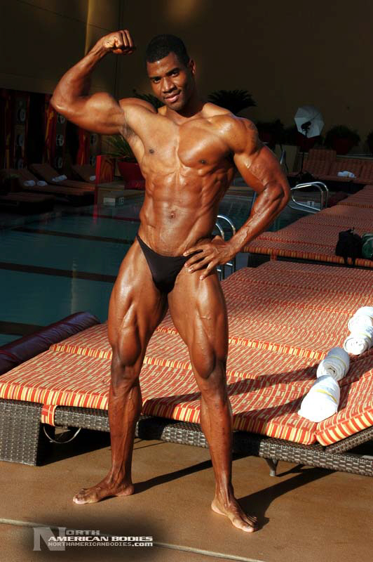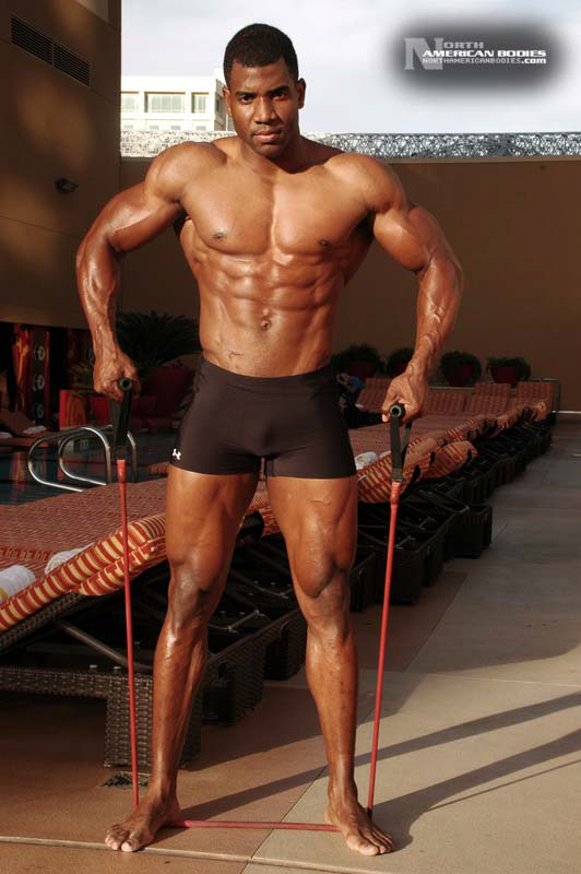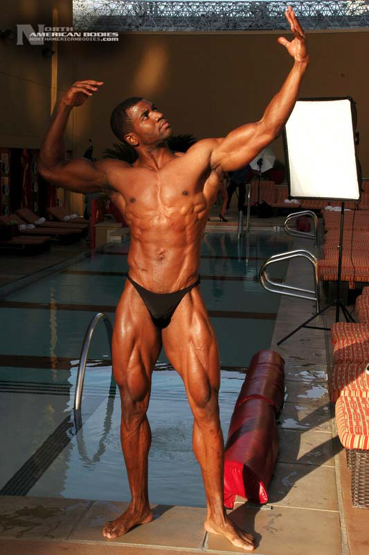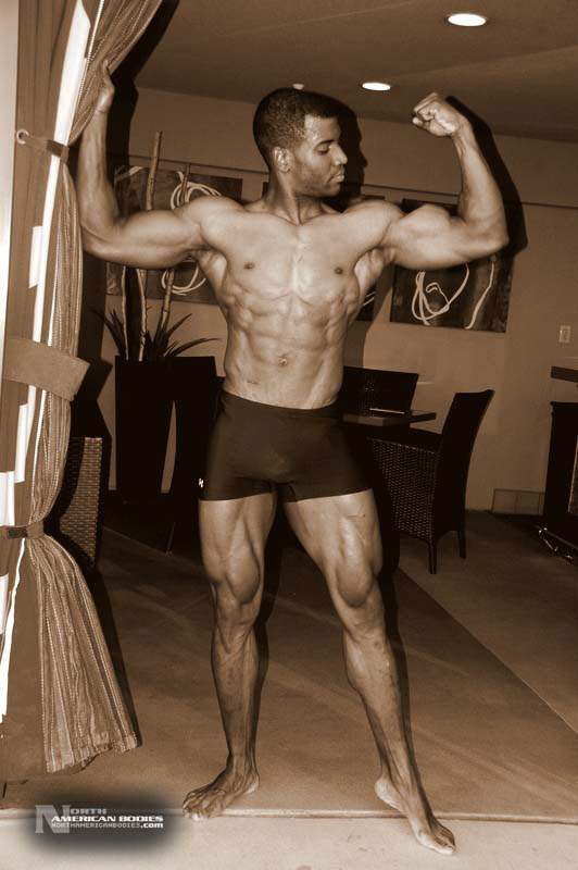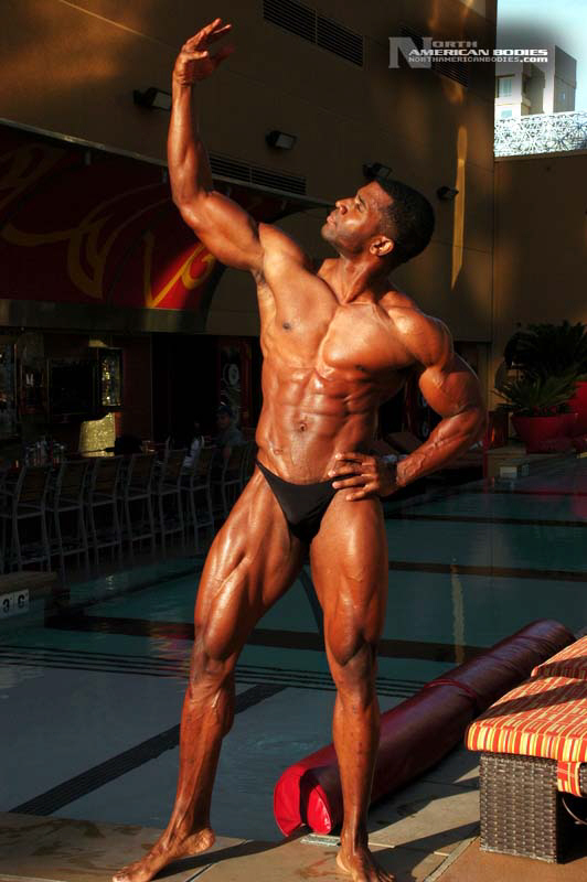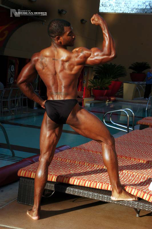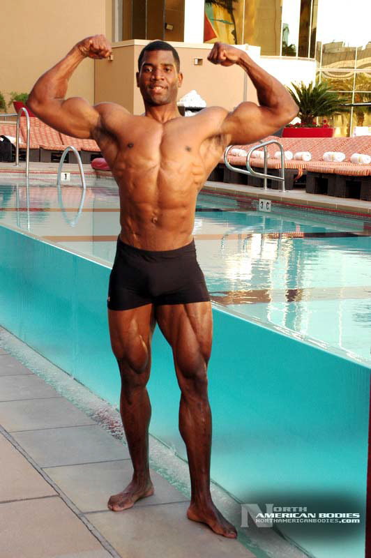 Xavisus Gayden is a natural bodybuilder and fitness model from California. Xavisus is 31 years of age, and at a height of 6’1″ he competes at a weight of 198 lbs. and goes to 220 lbs. in his off-season. His biceps measure 18″, chest 26″, waist 29″, quads 26″ and calves 15″. He has competed in several contests already, including the 2010 Musclemania Worlds (12th Pro Class), 2010 INBA/PNNA Natural Olympia (6th Pro Class), 2010 INBA/PNBA Natural Universe (5th Pro Class), 2010 Musclemania California Natural (1st Place), 2010 INBA Team USA (3rd Pro Class), 2010 Memorial Day Muscle Beach Classic (1st Place), 2010 NPC California State Bodybuilding Championships (5th Place), 2010 NPC Orange county Muscle Championships (3rd Place), 2010 INBA Iron Gladiator (1st Place)and the 2009 Model America (10th Place), 2009 INBA Natural Universe Bodybuilding & Fitness Championships (2nd Place), 2009 Musclemania California (1st Place). Xavisus has a sports background which includes football, basketball, rugby, track & field and gymnastics. He is also interested in fitness modeling, and has done several shoots with photographers and done some runway shows in addition to competing in modeling contests. We photographed Xavisus in Las Vegas at the 2010 Musclemania Worlds, and we are happy to have Xavisus Gayden join our roster of bodybuilders and fitness models at NorthAmericanBodies.com!