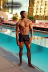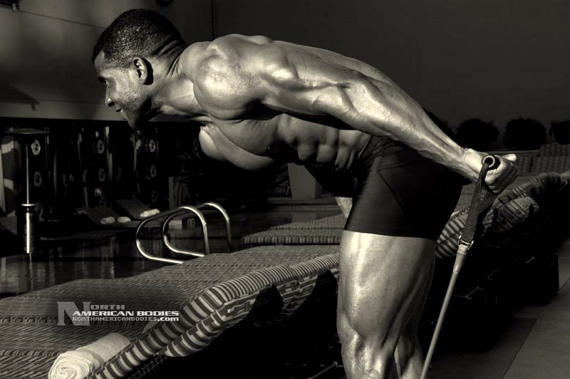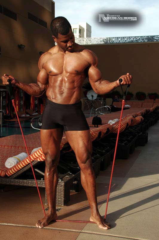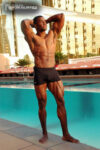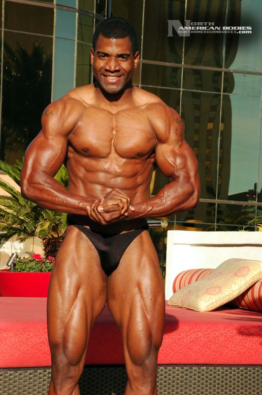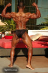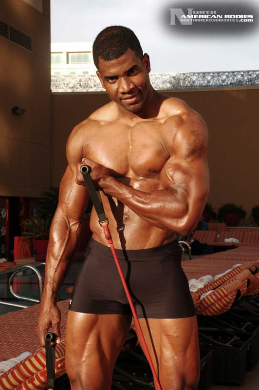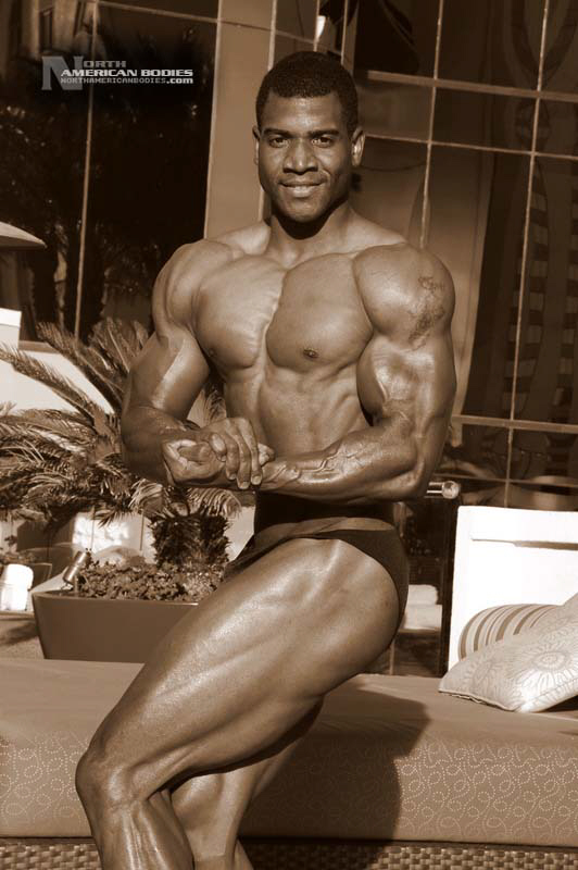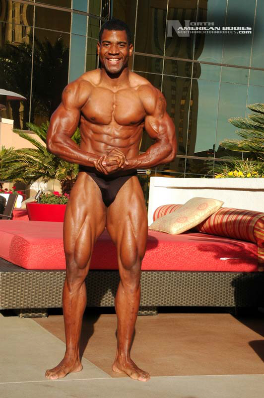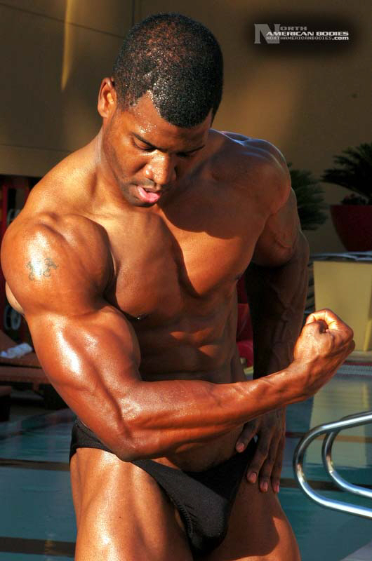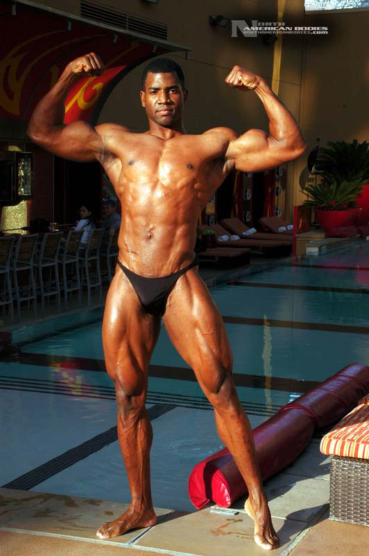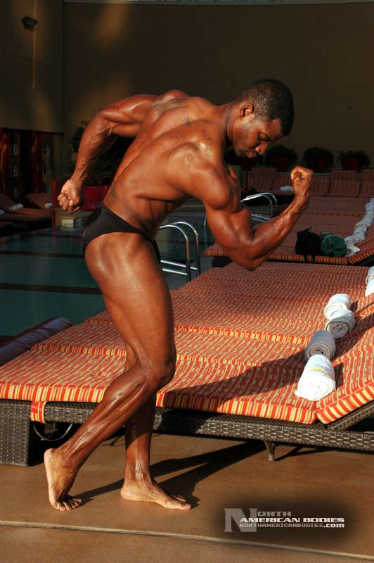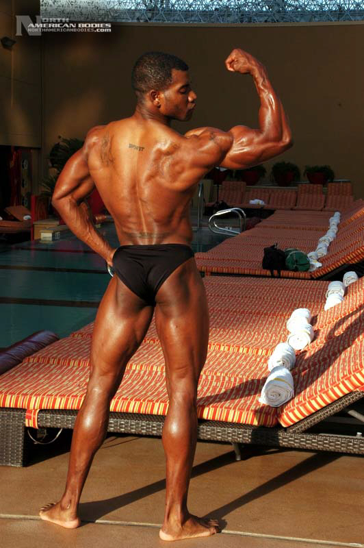 Xavisus Gayden is a natural bodybuilder and fitness model from California. Xavisus is 31 years of age, and at a height of 6’1″ he competes at a weight of 198 lbs. and goes to 220 lbs. in his off-season. His biceps measure 18″, chest 26″, waist 29″, quads 26″ and calves 15″. He has competed in several contests already, including the 2010 Musclemania Worlds (12th Pro Class), 2010 INBA/PNNA Natural Olympia (6th Pro Class), 2010 INBA/PNBA Natural Universe (5th Pro Class), 2010 Musclemania California Natural (1st Place), 2010 INBA Team USA (3rd Pro Class), 2010 Memorial Day Muscle Beach Classic (1st Place), 2010 NPC California State Bodybuilding Championships (5th Place), 2010 NPC Orange county Muscle Championships (3rd Place), 2010 INBA Iron Gladiator (1st Place)and the 2009 Model America (10th Place), 2009 INBA Natural Universe Bodybuilding & Fitness Championships (2nd Place), 2009 Musclemania California (1st Place). Xavisus has a sports background which includes football, basketball, rugby, track & field and gymnastics. He is also interested in fitness modeling, and has done several shoots with photographers and done some runway shows in addition to competing in modeling contests. We photographed Xavisus in Las Vegas at the 2010 Musclemania Worlds, and we are happy to have Xavisus Gayden join our roster of bodybuilders and fitness models at NorthAmericanBodies.com!